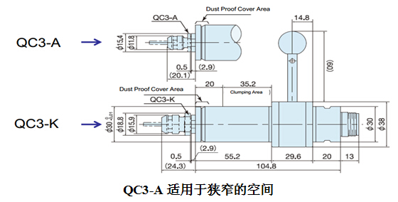 只有QC是杠桿式主軸,使用機(jī)床夾具系統(tǒng)加工中心技術(shù)。