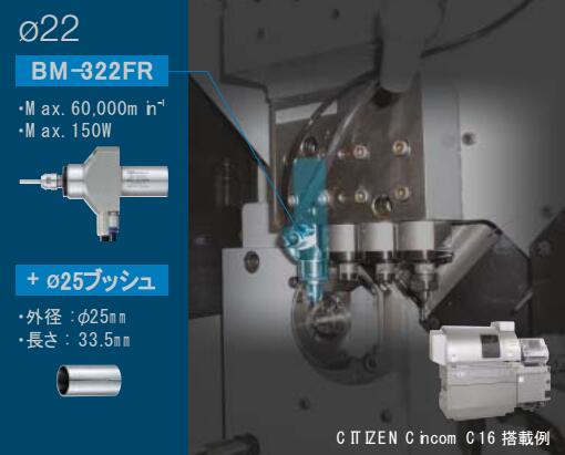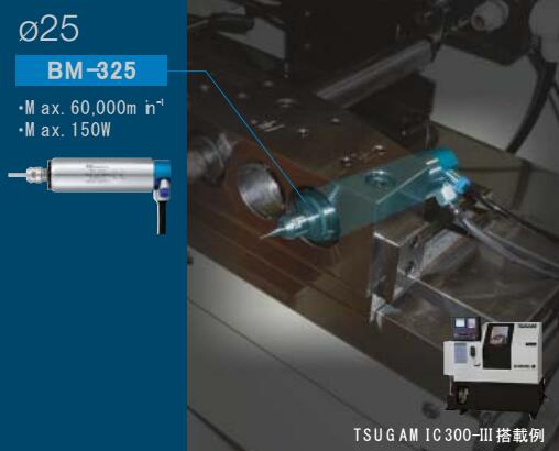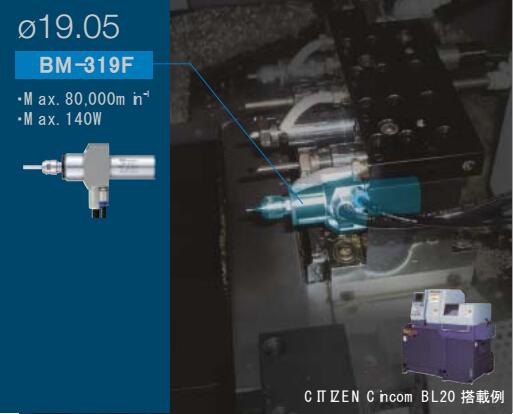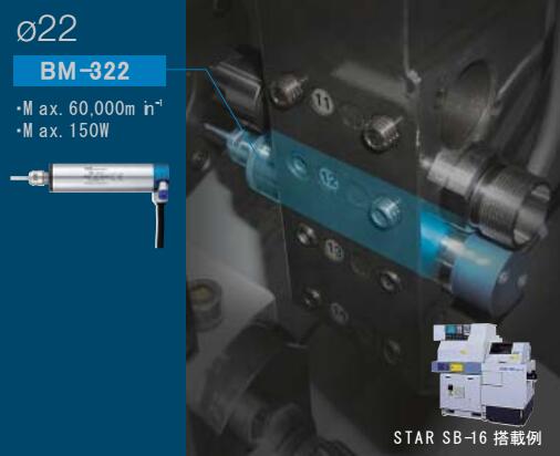iSpeed3專為精密自動(dòng)車床開發(fā)。主軸全場(chǎng)87.3mm,采用超小型精密控制器單元,馬達(dá)轉(zhuǎn)速可以100min-1的單位設(shè)置,實(shí)現(xiàn)微小精密切削加工。高速主軸特點(diǎn):1.高性能,高效率,高精度。2.采用高精度的陶瓷軸承。3.外徑規(guī)格有Φ19.05mm,Φ20mm,Φ22mm,Φ25。產(chǎn)品:控制器單元(100V,120V,200V,220V),轉(zhuǎn)速:1000~80000min-1;輸出方式:2通道(不可同時(shí)運(yùn)行);最大輸出功率:150W;定格消耗電流:0.65A;空氣消耗量:30l/min.BM-319F、BM-319、BM-320F、BM-320:主軸轉(zhuǎn)速:80000min-1;最大輸出功率:140W;主軸震動(dòng)精度:1μm以內(nèi)。BM-322FL/BM-322FR,BM-322、BM-325:主軸轉(zhuǎn)速:60000min-1;最大輸出功率:150W;主軸震動(dòng)精度:1μm以內(nèi)。