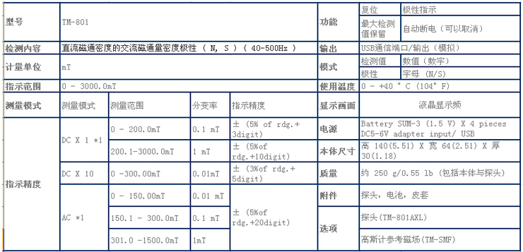 TM-801高斯計(jì)參數(shù):