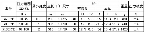 KANON活動開口扭力扳手產(chǎn)品規(guī)格