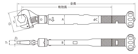 KANON活動開口扭力扳手產(chǎn)品尺寸