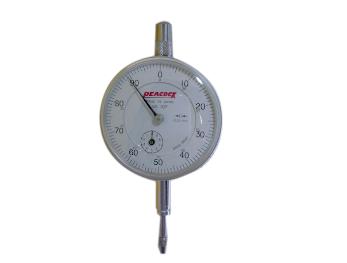日本孔雀百分表107系列是比較常用的指針式百分表,是標準型的量表,ZUI小讀值0.01mm,測量范圍10mm。