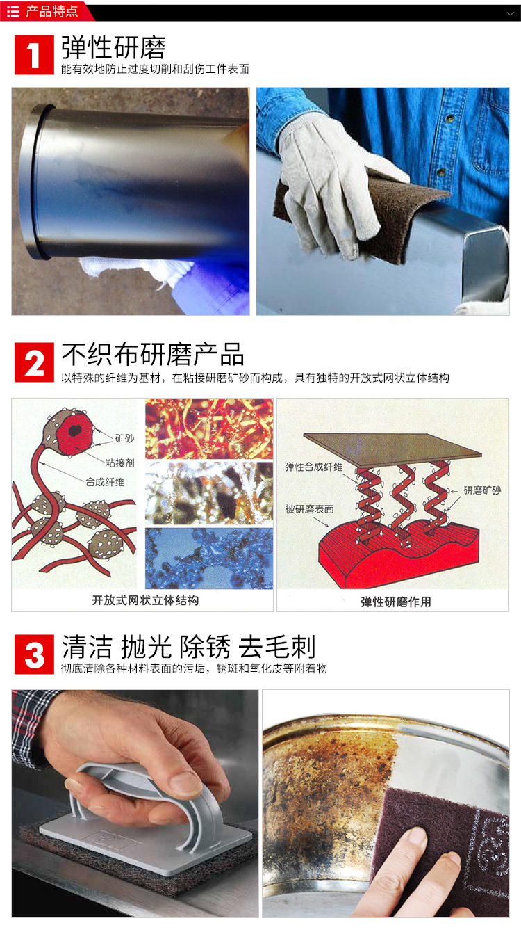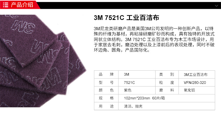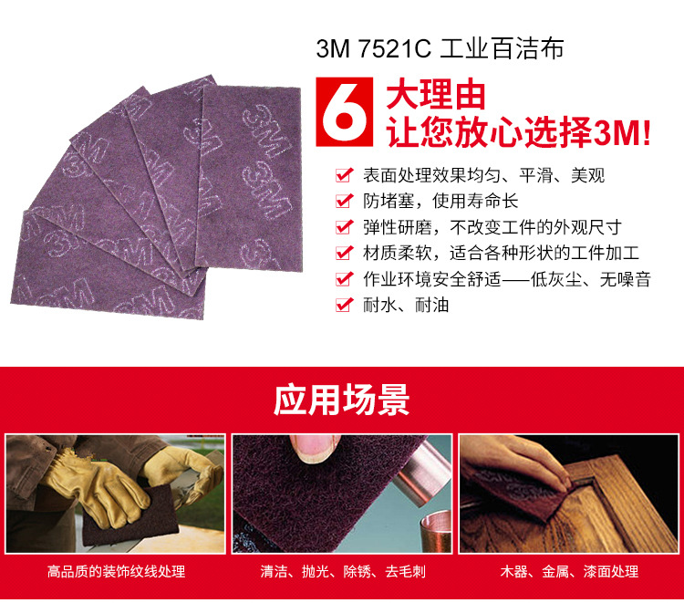 • 3M工業(yè)百潔布主要用于家居去毛刺、磨邊處理以及上漆前后的表面處理,同事不破壞圓角、邊角,使用國(guó)際化。