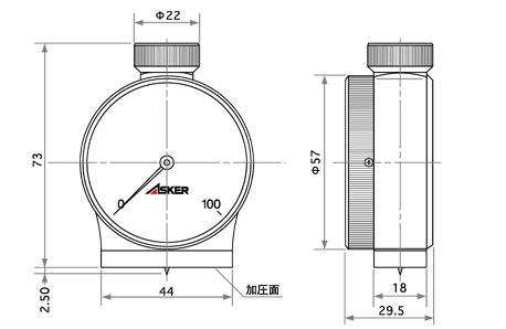 加壓面與試料間接觸的面積需在44*18mm尺寸范圍以上的情況下才能正確測量,試料的測量部位狹小或者對凹陷部位進行檢測的情況下,則使用長腳型硬度計(DL型)