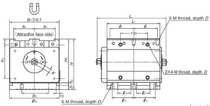 • 吸盤可以使用兩側(cè)和底部的螺紋孔,垂直安裝在機床的表面。