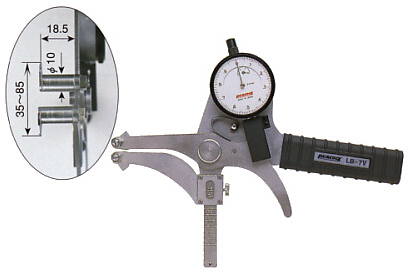 孔雀peacock帶表內(nèi)卡規(guī)LB-6,測(cè)量范圍30-50mm,測(cè)定喉深80mm,精度0.01mm,誤差±0.03mm,測(cè)頭高度4mm。適用于難以測(cè)量的內(nèi)徑和溝寬度測(cè)量。