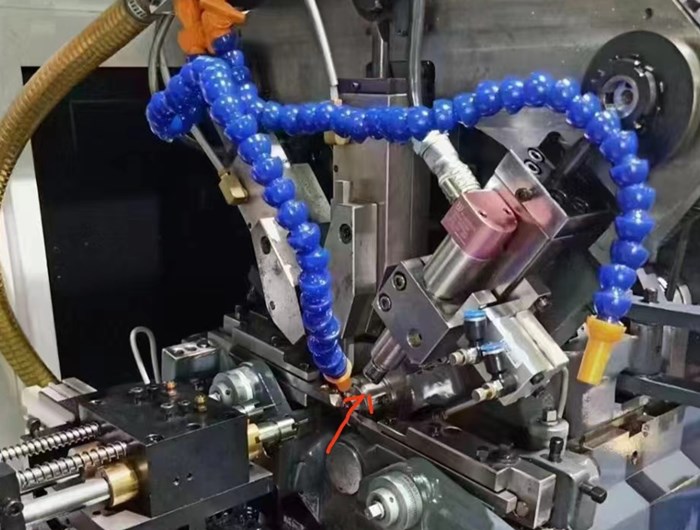 圖為MSIY-25電主軸加裝在凸輪機(jī)車刀位進(jìn)行斜孔加工的加工案例。