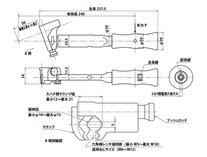 國際單位制型號 | 扭力調(diào)整范圍[N.m] | 公制型號 | 扭力調(diào)整范圍[kgfNaN] | 重量 [kg] | 最大手力[N] | ||