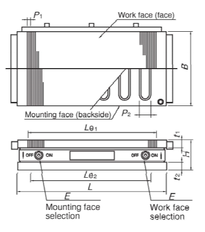 吸盤(pán)分兩面,永磁吸引面和夾頭安裝面。開(kāi)關(guān)可以打開(kāi)和關(guān)閉,因此無(wú)需機(jī)械夾緊安裝??捎糜诹黧w。