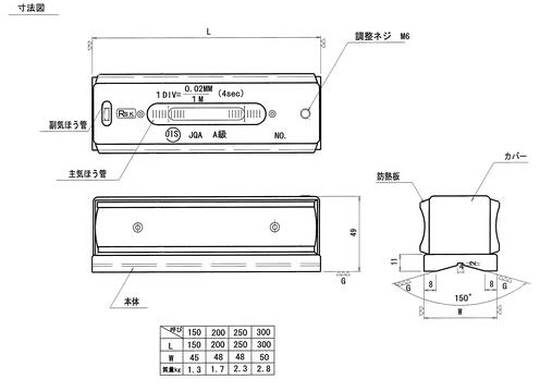 • AA級(jí)、A級(jí)、B級(jí)都是依照J(rèn)IS B7510規(guī)格制作及檢查。 A級(jí)氣泡管精度保證在±0.5標(biāo)準(zhǔn)以下。(0.02mm) 0.05mm和0.1mm也能保證在±0.3以內(nèi)