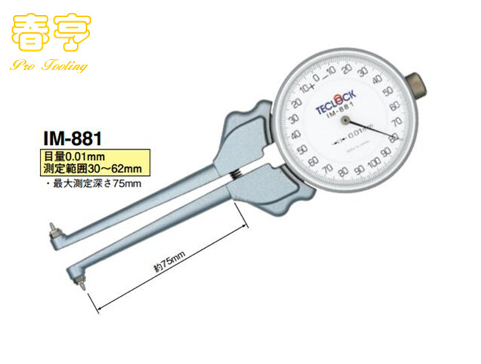 • TECLOCK內(nèi)卡規(guī)IM-881能夠測(cè)量圓筒狀內(nèi)徑和內(nèi)部的溝徑的內(nèi)卡規(guī)。由于替測(cè)定子的改良O輪的溝徑也能進(jìn)行測(cè)量。測(cè)量范圍:30-62mm,分辨率0.01mm。