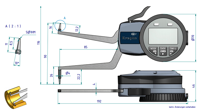 多個(gè)數(shù)顯設(shè)定功能: 絕對和相對測量, 上下限超差顯示等。