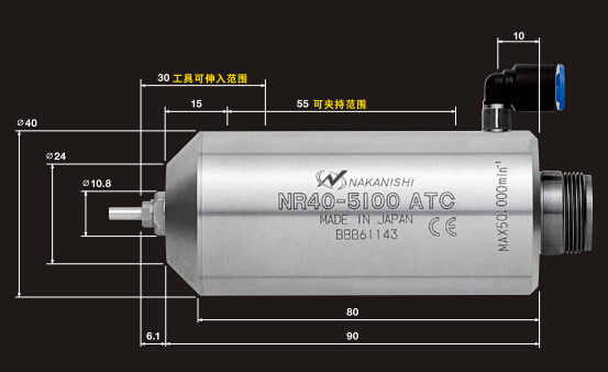 • NAKANISHI自動(dòng)換刀分板機(jī)主軸NR40-5100 ATC是一款氣動(dòng)換刀主軸,常用于分板機(jī)領(lǐng)域,轉(zhuǎn)速高達(dá)50000轉(zhuǎn)/min,跳轉(zhuǎn)精度2μm以內(nèi),是在PCB分板切割行業(yè)最為暢銷的一款主軸型號!