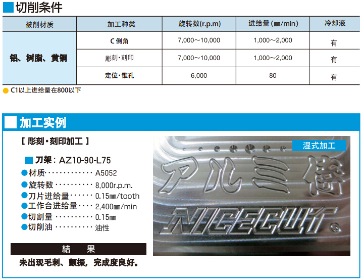 鋁加工專用的刀尖形狀,切割鋒力度好, 不易出現(xiàn)震顫、毛刺,大大降低加工后的去毛刺作業(yè)。 用高強度提高耐磨性,大幅度的消減運行成本。