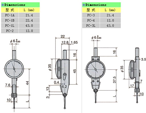 杠桿百分表PC-1L產(chǎn)品尺寸