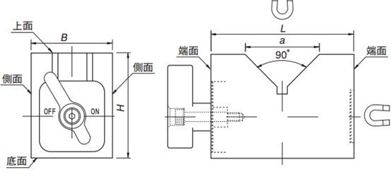 ◆ (V平面)和后表面能夠吸附頂部。 ◆ ON-OFF切換桿可選擇的固定/取消。 ◆ 防滴漏,防油結(jié)構(gòu)。 ◆ 光潔的工作表面。 ◆ 兩個(gè)一套。 | ![]() |