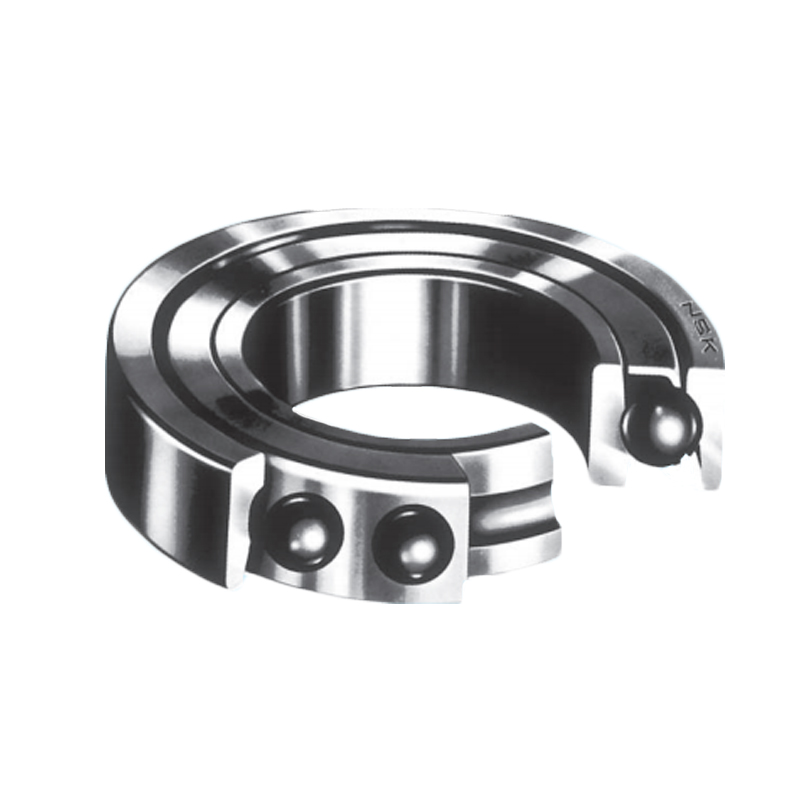 單列角接觸球軸承-這種結(jié)構(gòu)形式的軸承,可以承受徑向載荷和單向的軸向載荷。球與內(nèi)圈、外圈有15度、25度、30度或40度的接觸角。其接觸角越大,軸向載荷的承受能力越大。接觸角越小,則約有利于高速旋轉(zhuǎn)。通常,將二套軸承對置,調(diào)整內(nèi)部游隙后使用。一般,采用鋼板沖壓保持架,但接觸角小于30度的高精度軸承,主要使用聚酰胺形成保持架。