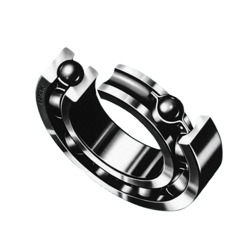 (1)滿球軸承,由于在內(nèi)圈及外圈上設(shè)計了填球口,可比深溝球軸承多裝球。因為有填球口,所以不適于軸向載荷大的用途。另外使用軸承時,盡可能將外圈的填球口位置只作為非載荷圈。保持架為沖壓保持架。